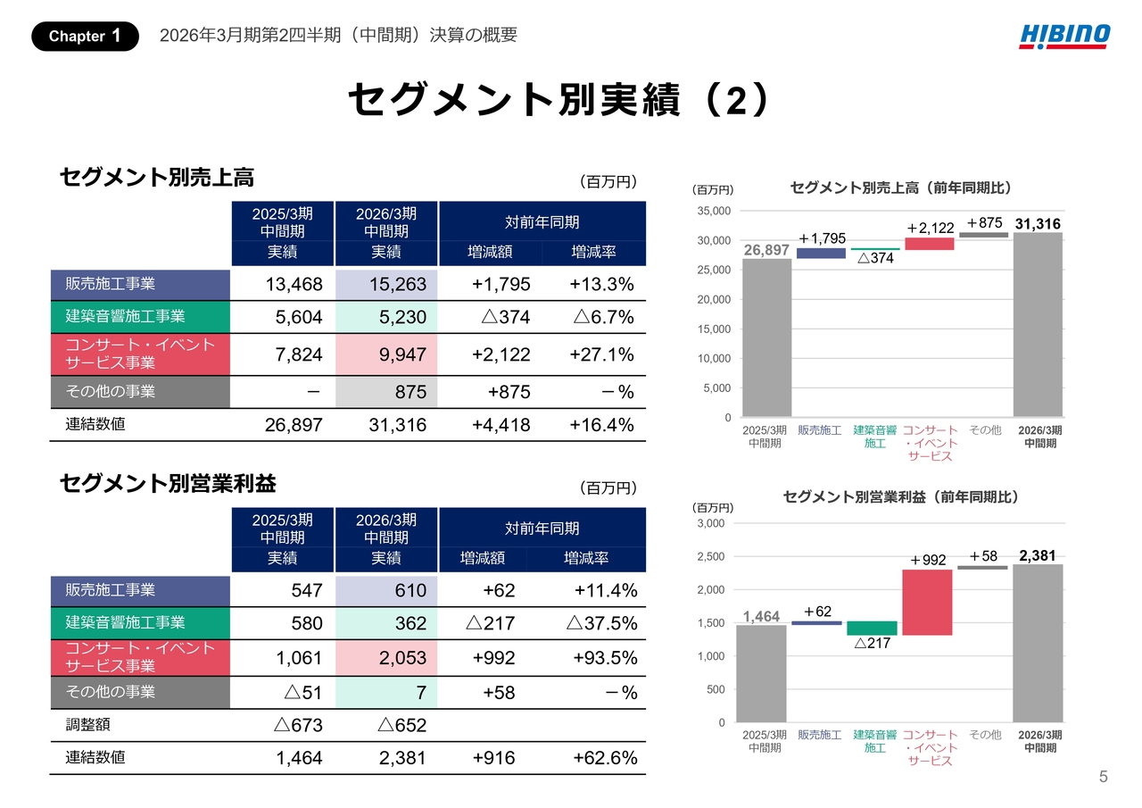 4つの事業のうち建築音響施工事業のみが減収減益となりましたが、そのほか3つの事業はいずれも増収増益となりました。