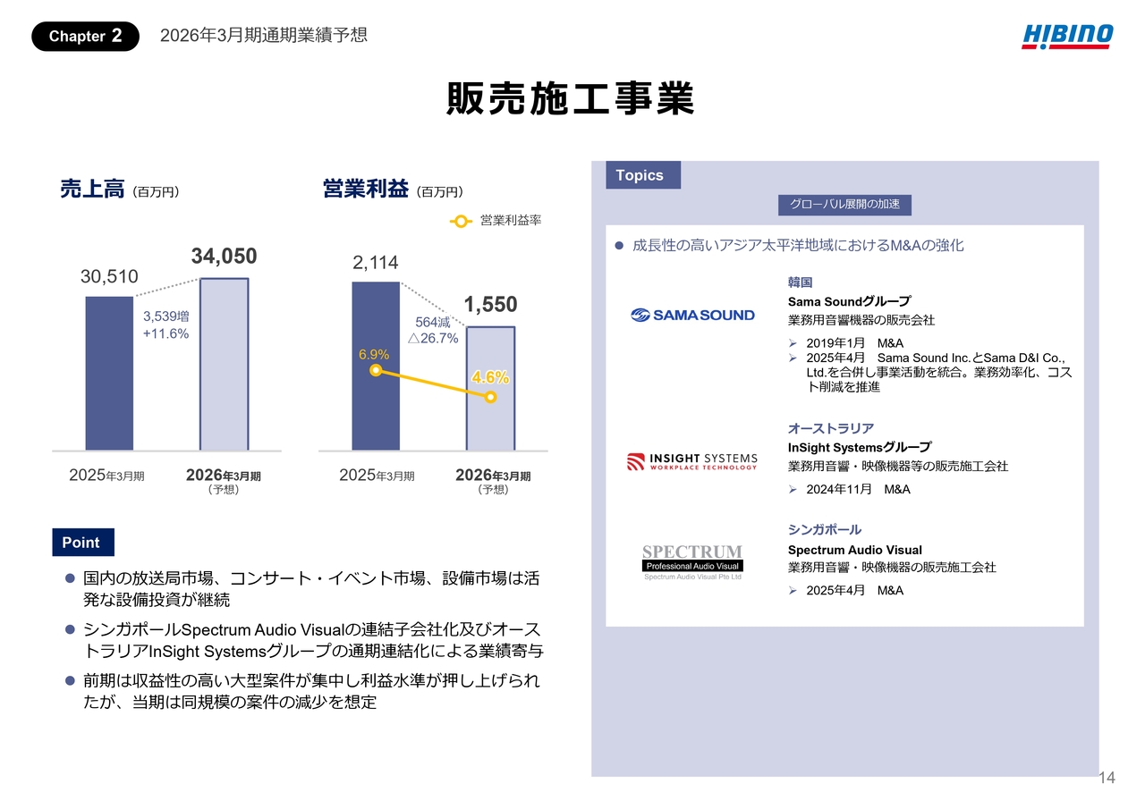 増収の最大の要因は、第1四半期に子会社化したシンガポールのSpectrum Audio Visualの連結化をはじめ、国内外で行ったM&Aによる連結範囲の拡大です。