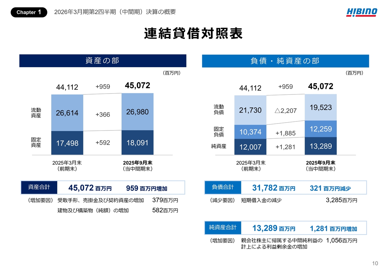 総資産は、前期末より9億5,900万円増加し、450億7,200万円となりました。