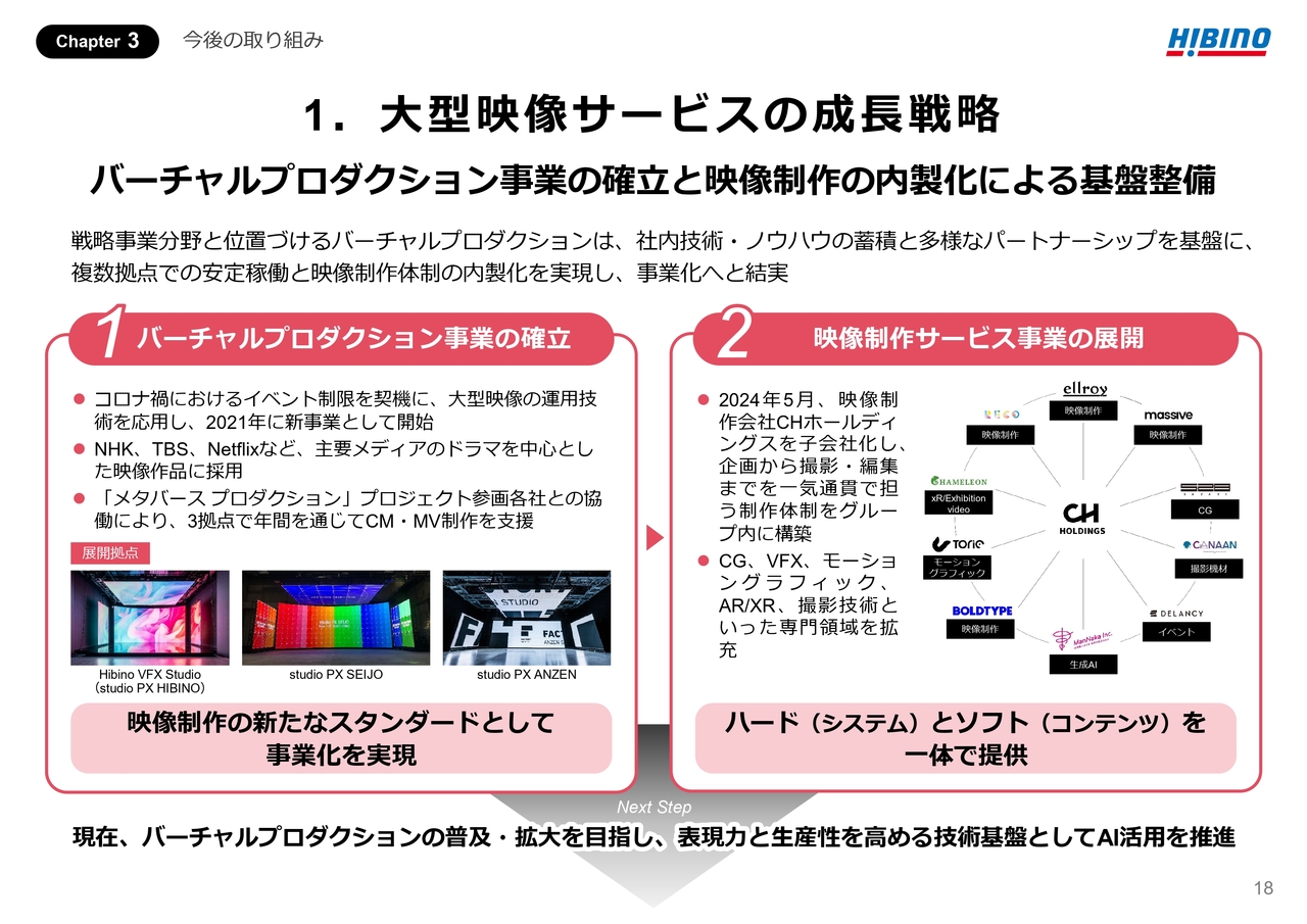 1.大型映像サービスの成長戦略 バーチャルプロダクション事業の確立と映像制作の内製化による基盤整備