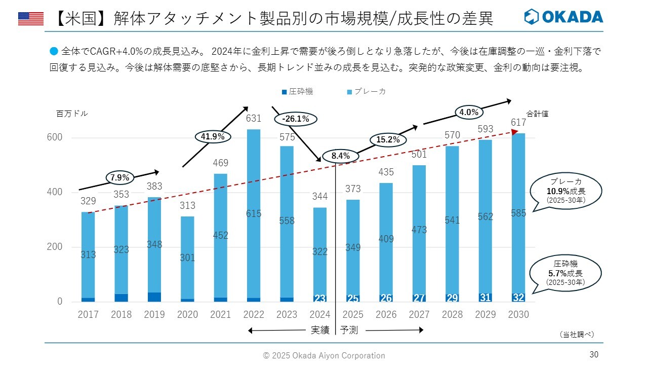 【米国】解体アタッチメント製品別の市場規模/成長性の差異