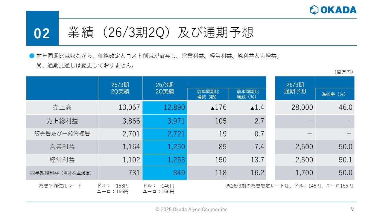 それでは、2026年3月期第2四半期決算説明会を始めます。まず、業績サマリーについてご説明します。