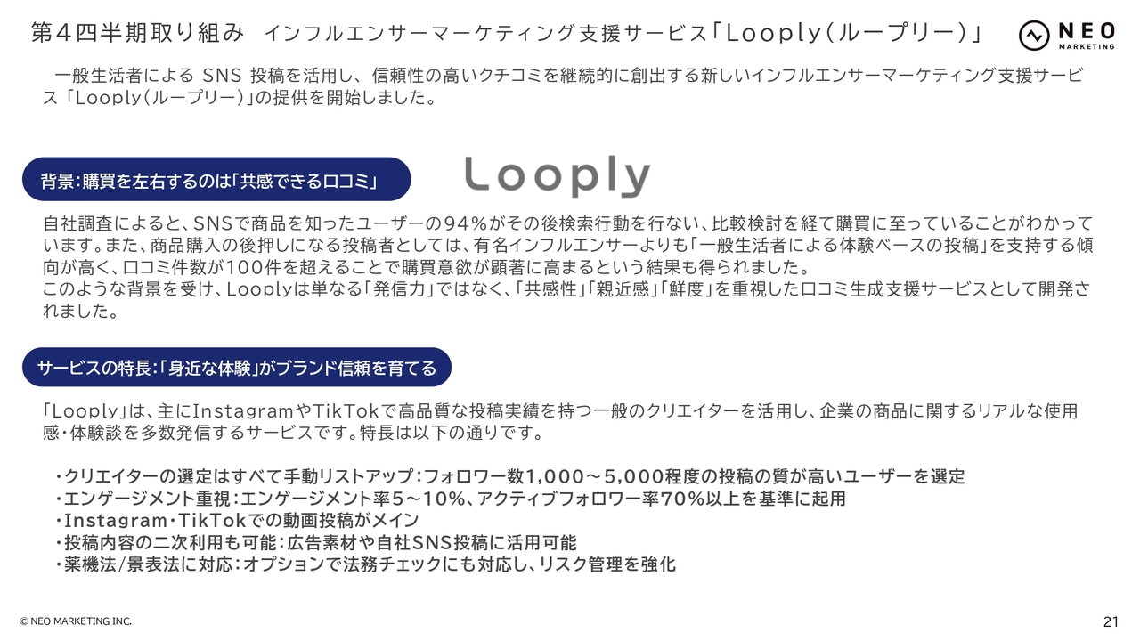 第4四半期取り組み インフルエンサーマーケティング支援サービス 「Looply (ループリー)」