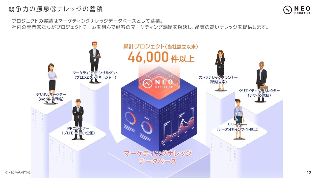 3つ目に、ノウハウの蓄積にも強みを持っています。当社では、年間でおおよそ3,000件以上のプロジェクトを遂行しています。