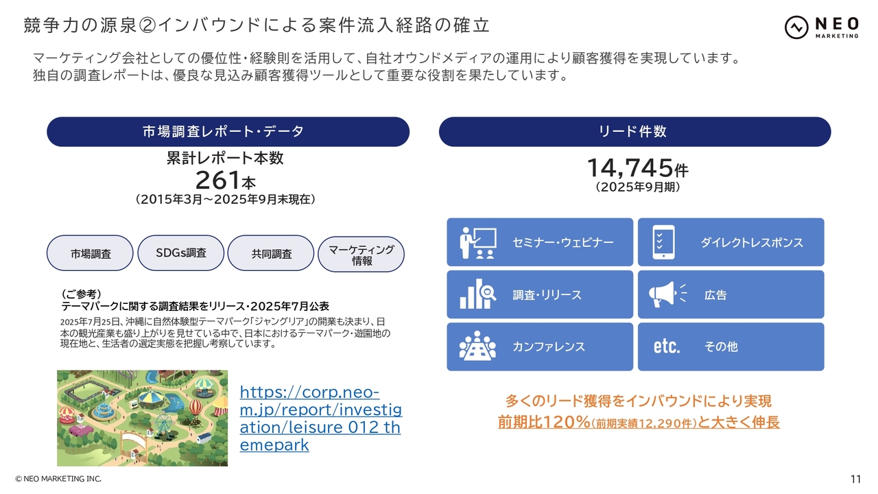 特徴の2つ目です。お客さまからお問い合わせをいただくような案件の流入経路を確立しています。