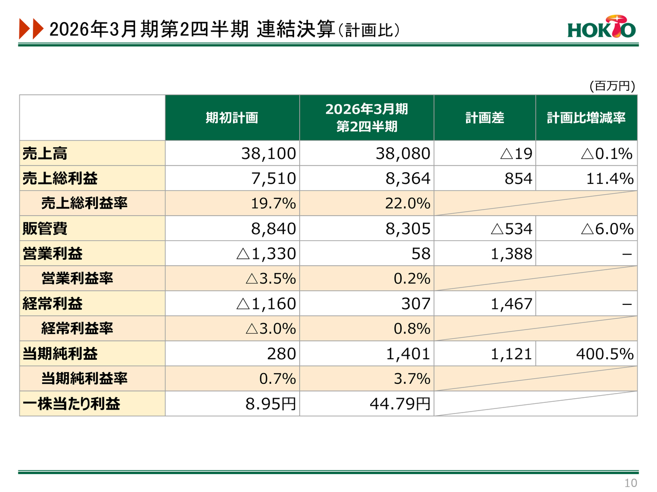 2026年3月期第2四半期の決算のポイントとして、スライドに2点挙げています。詳細については後ほどご説明します。