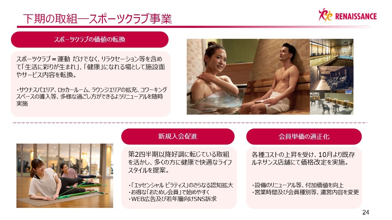 また、会員数の増加を目指したプロモーションや、昨今の物価上昇を踏まえた会員単価の適正化、さらに店舗運営の生産性向上にも取り組んでいきます。