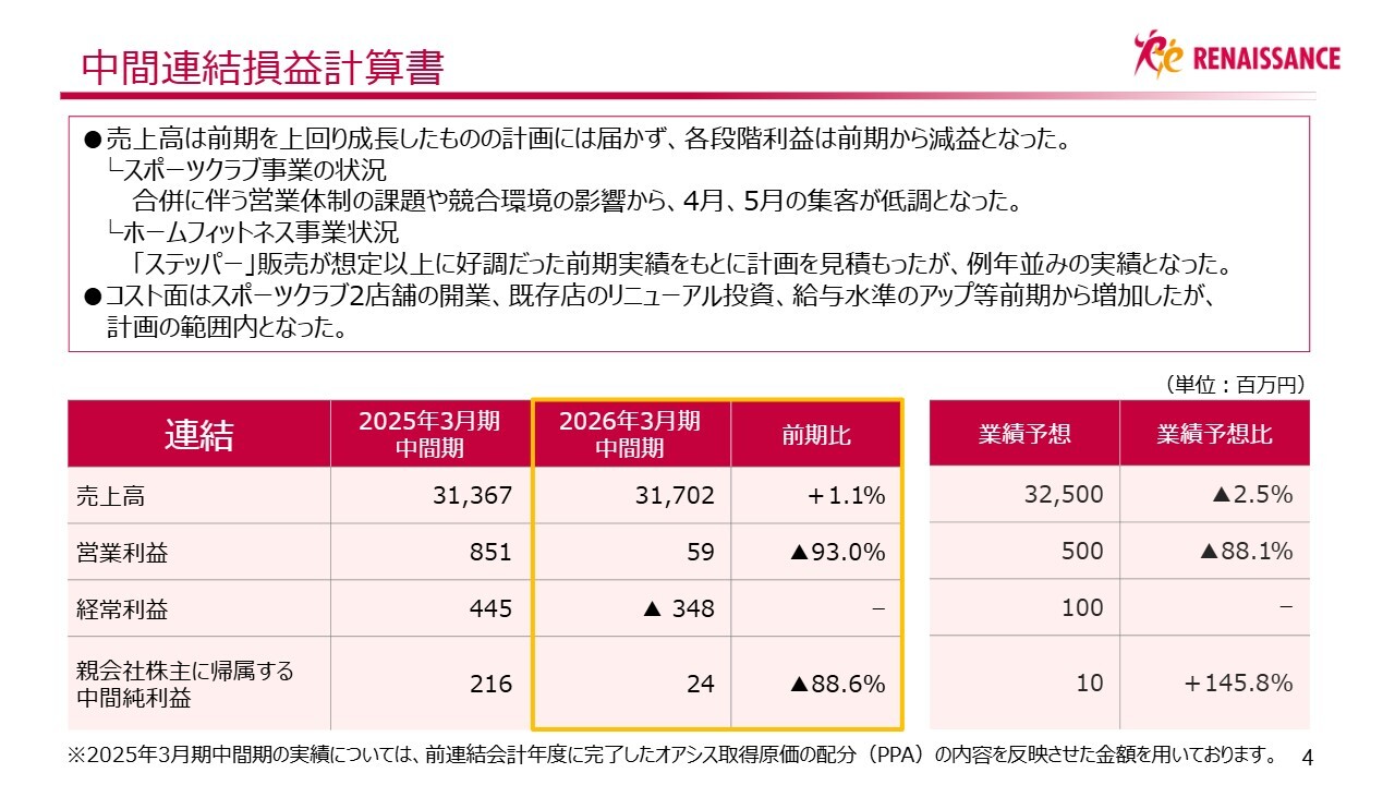 【QAあり】ルネサンス、営業利益は黒字転換し回復基調 スポーツクラブ事業の集客、ホームフィットネス事業の販売に注力