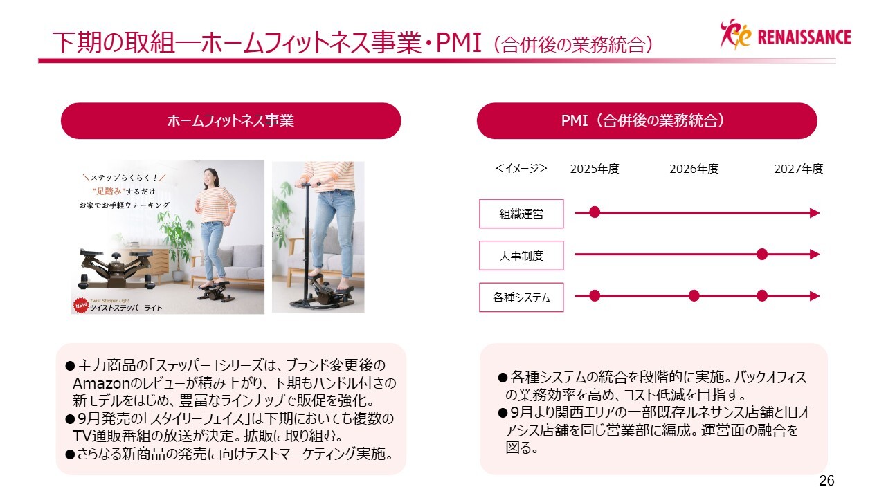 下期の取組―ホームフィットネス事業・PMI (合併後の業務統合)