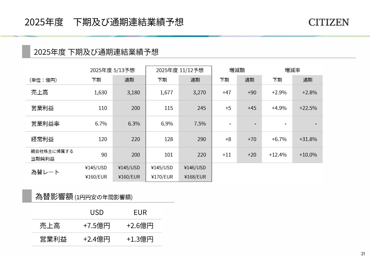 【QAあり】シチズン時計、主力の時計事業が大幅増益を達成 通期業績予想を上方修正
