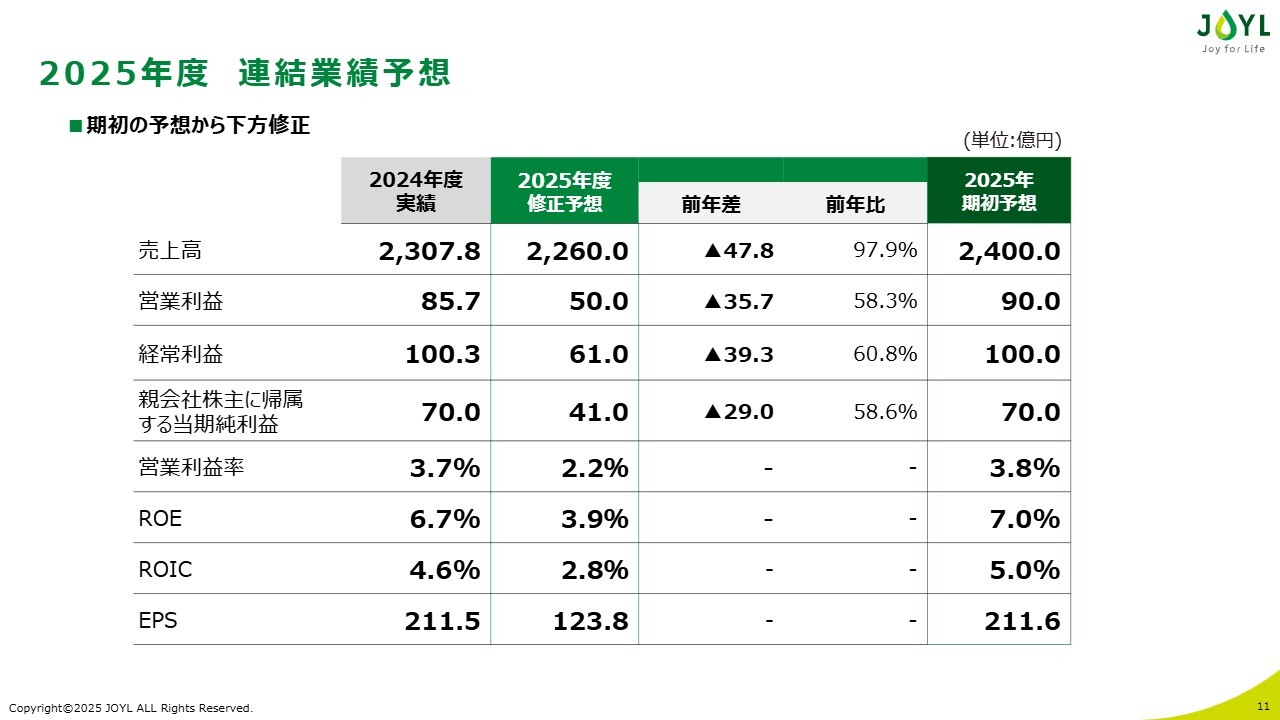 まず、2025年度上期および通期業績予想のポイントについてご説明します。