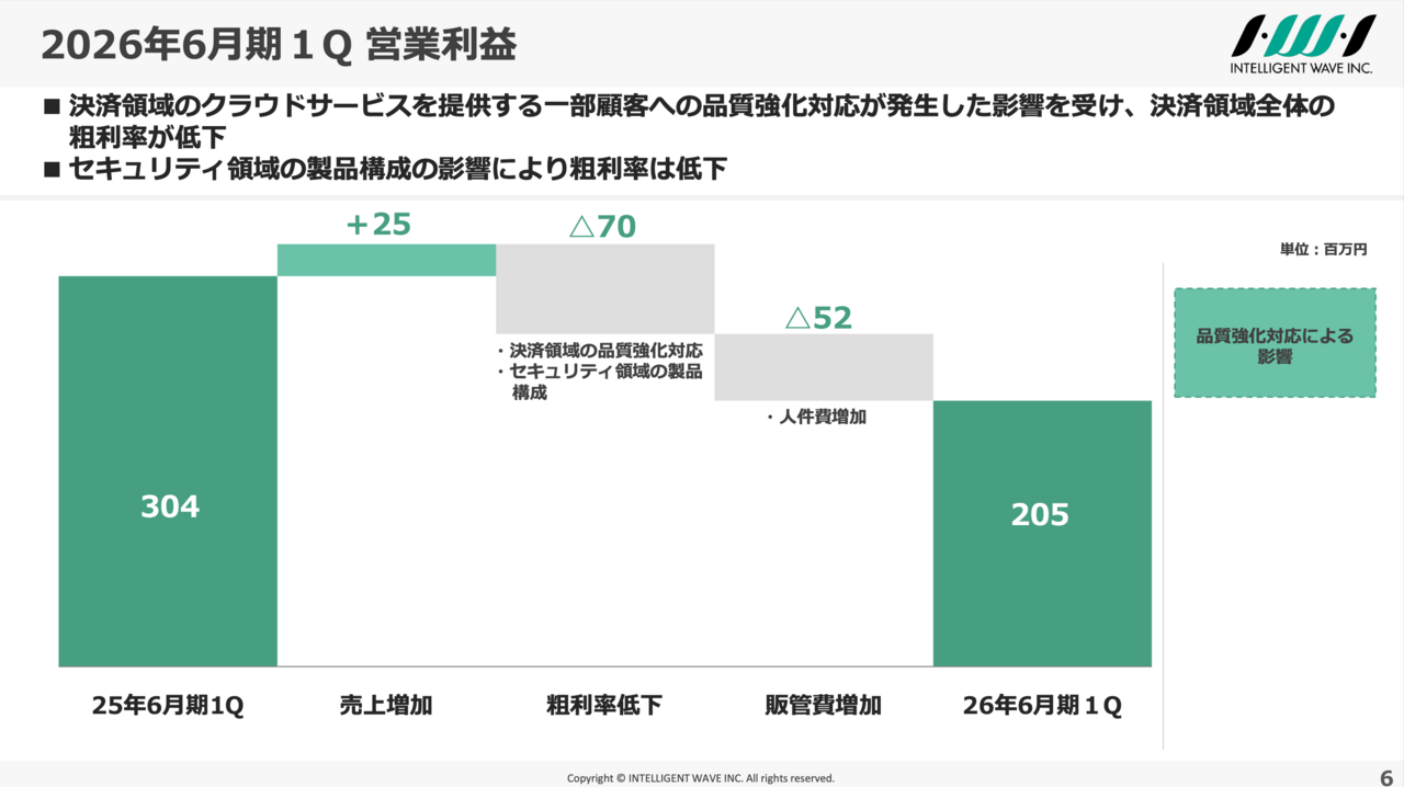 【QA あり】インテリジェント ウェイブ、決済領域堅調で増収も品質対応発生により減益 コスト構造改革と品質強化に取り組む