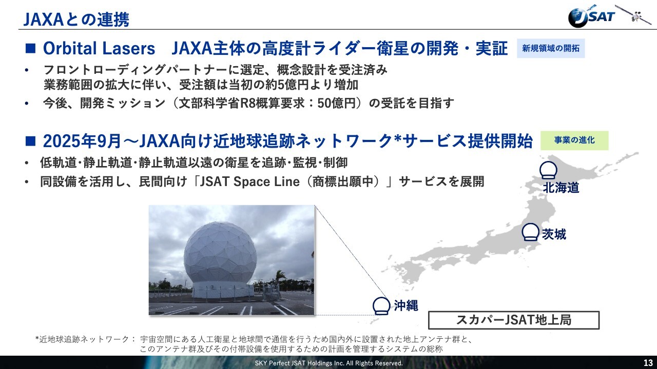 JAXAとの契約についても、ご理解のとおりです。本期は9月分だけの寄与ですが、下期からは下期全体および翌年度以降は通年で収益を計上する流れになります。以上がご説明です。