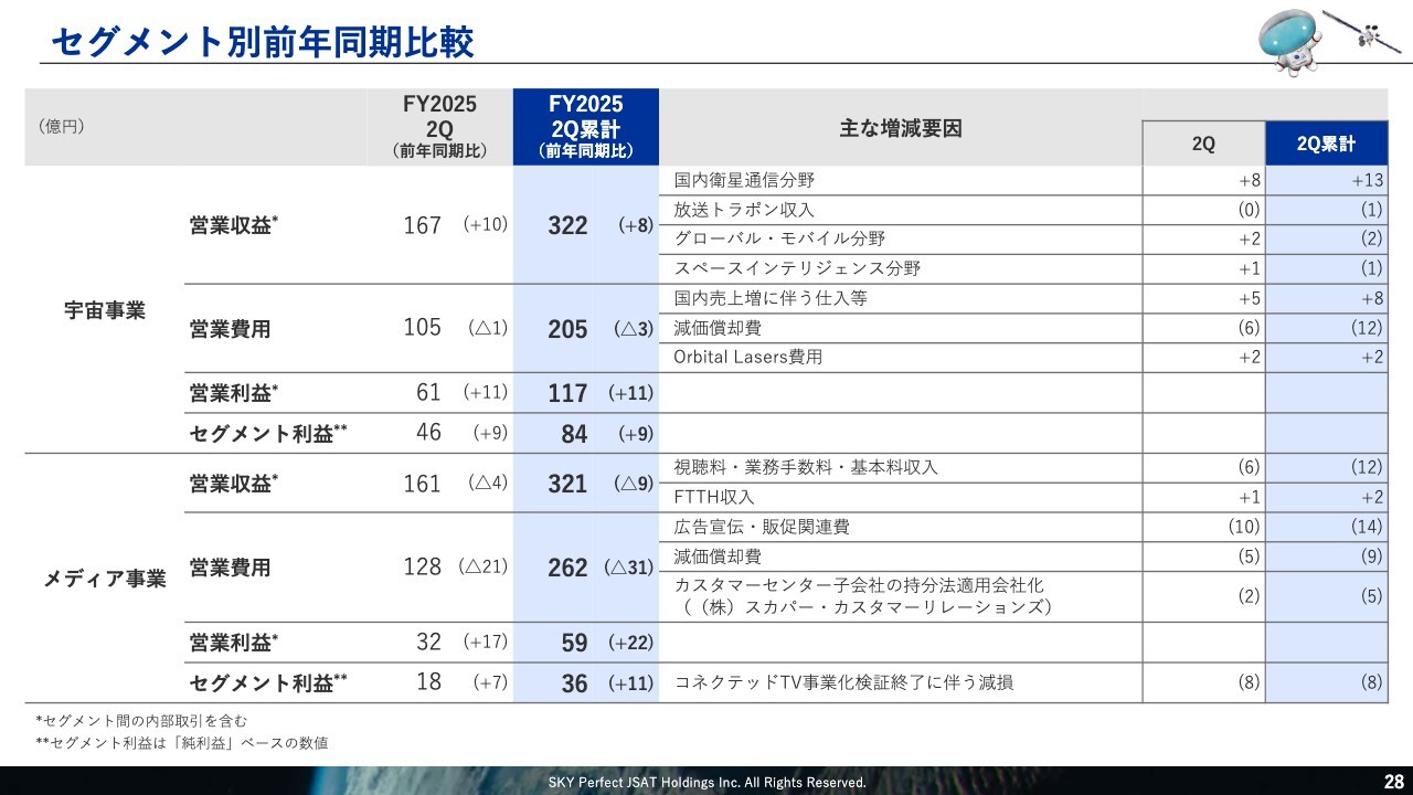 後ほどメディア担当の中川よりご説明しますが、コネクテッドTVの事業化検証終了に伴い、第2四半期に8億円の特別損失を計上しています。なお、こちらのセグメント利益への影響額は5億円です。