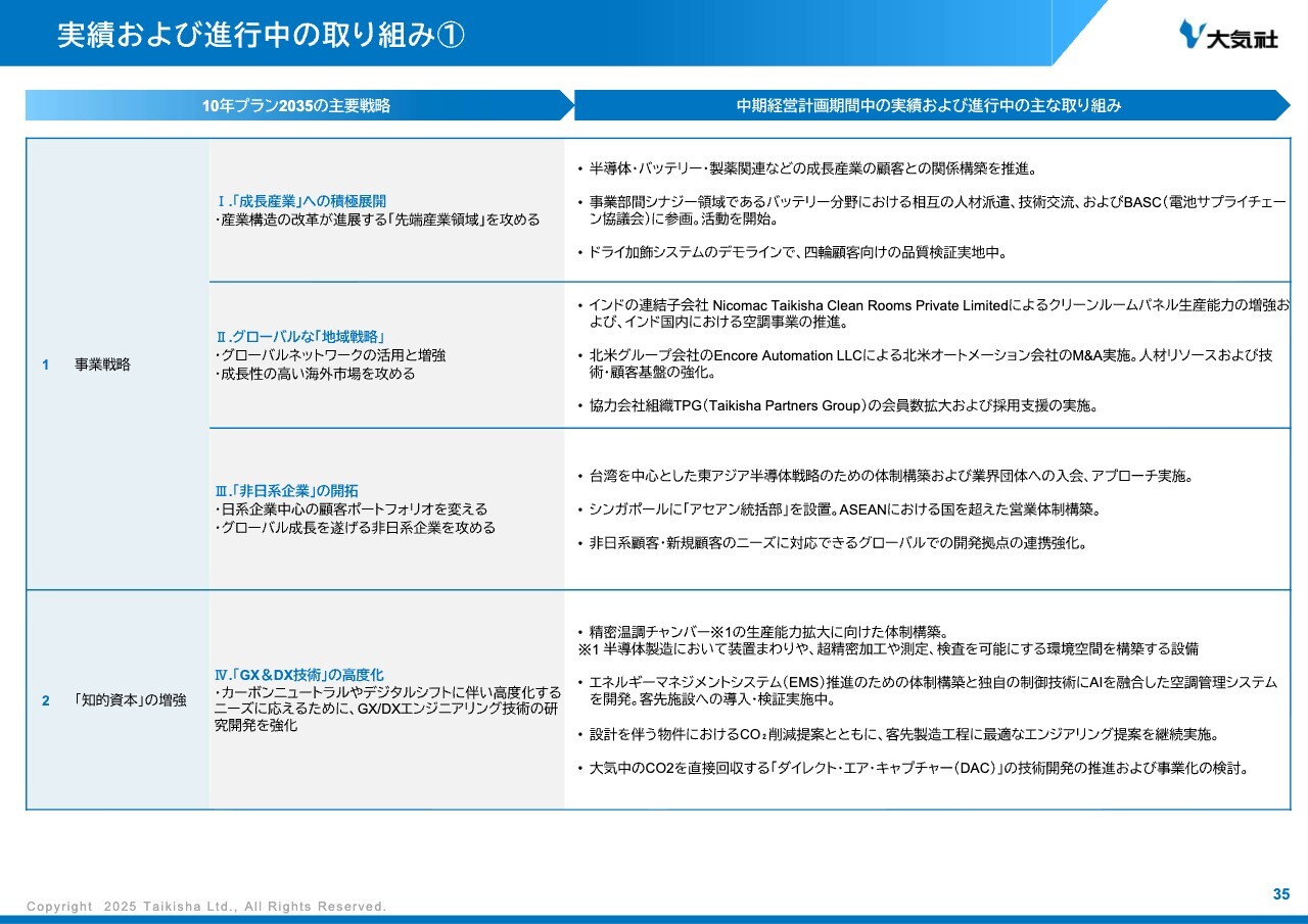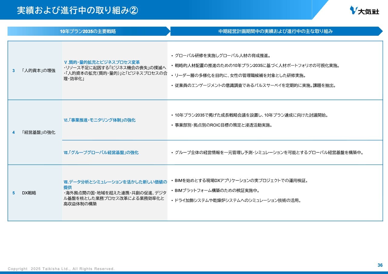 スライドからは、本中計の実績、進行中の主な取り組みについて記載しています。主要な取り組みをご説明します。