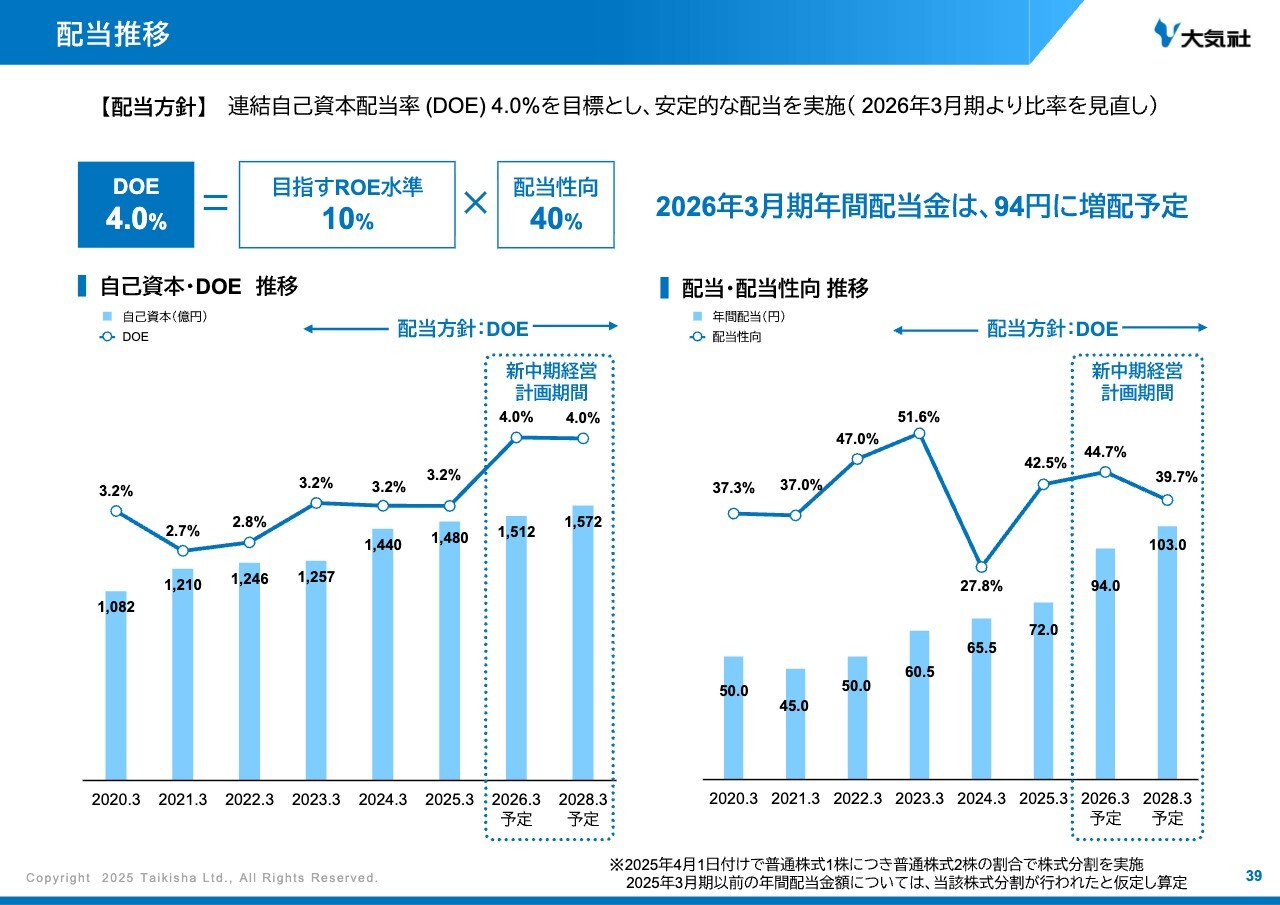 2026年3月期の年間配当は、期初公表の配当予定金額から変更はなく、1株につき94円で実施する予定です。