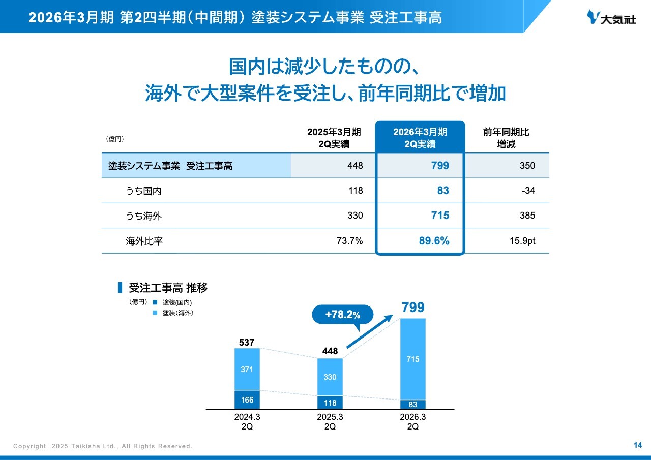 2026年3月期 第2四半期(中間期) 塗装システム事業 受注工事高