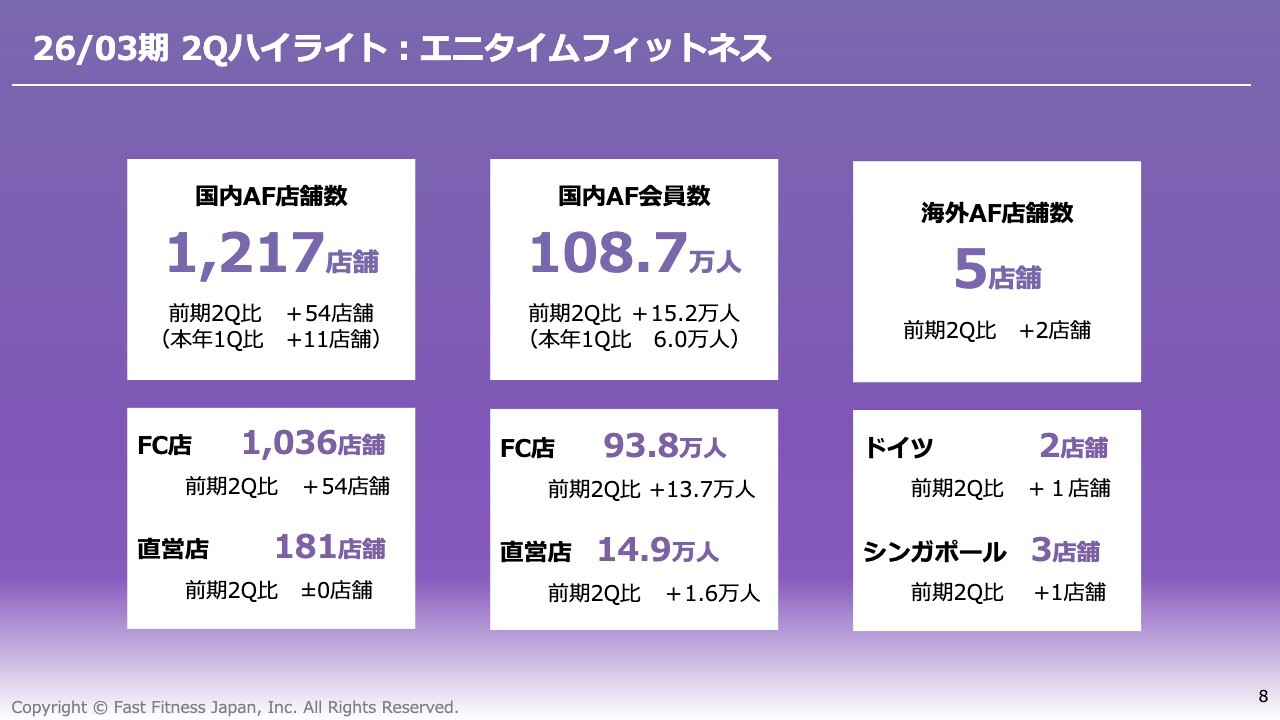 26/03期 2Qハイライト:エニタイムフィットネス