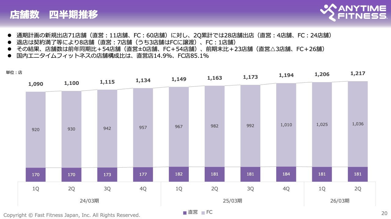 一方で、直営店においても、店舗運営効率やサービスの改善に取り組むことで、安定した会員基盤の維持と増加が続いています。