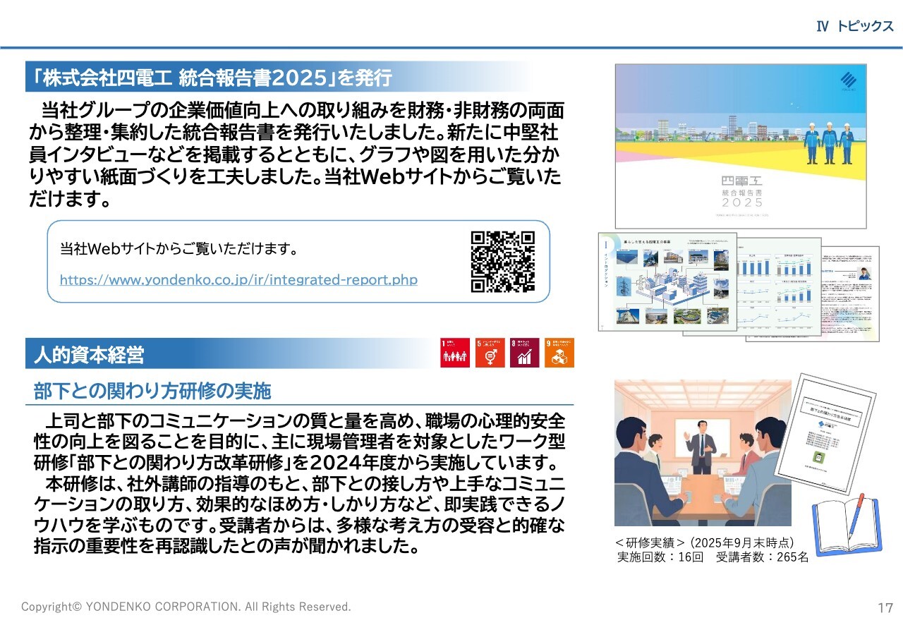 続きまして、2025年度中間期の「トピックス」を紹介していますので、お時間のあるときに、ご覧いただけますと幸いです。