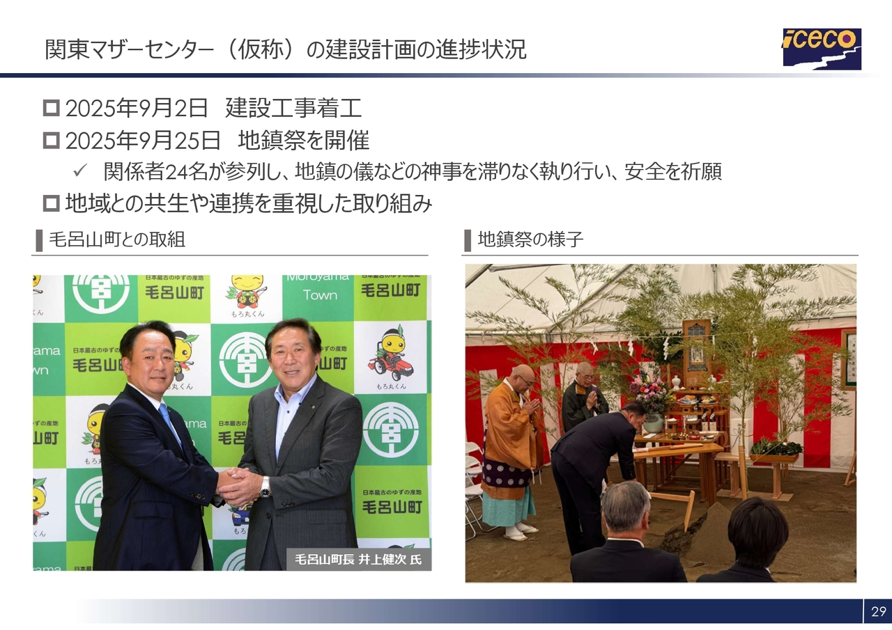 関東マザーセンターの建設計画の進捗状況についてご説明します。