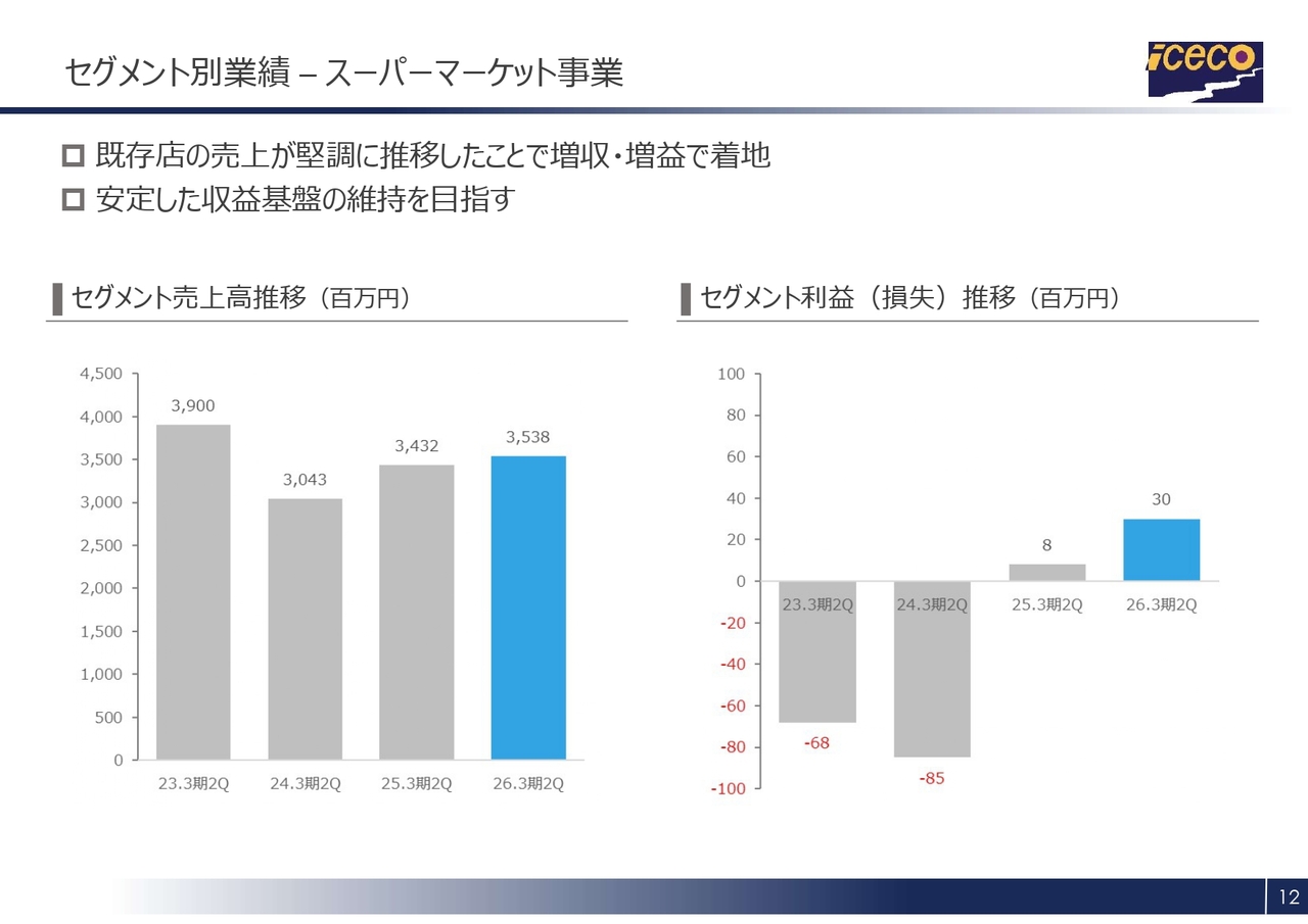 スーパーマーケット事業についてご説明します。当第2四半期は、新規出店および閉店はありませんでした。