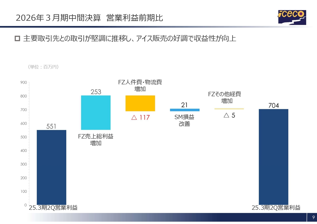 2026年3月期中間決算 営業利益 前期比