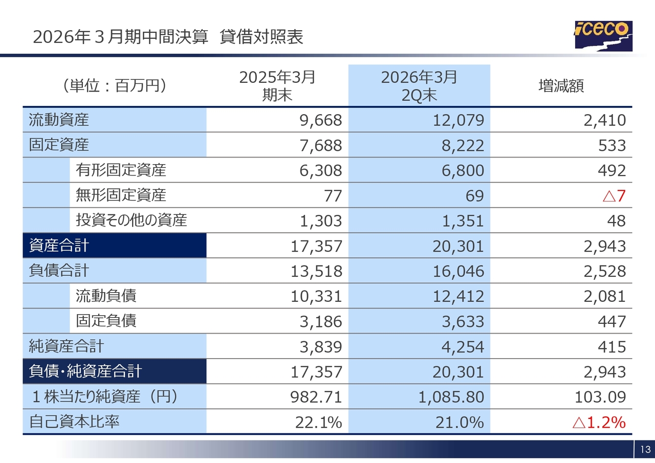 2026年3月期中間決算 貸借対照表