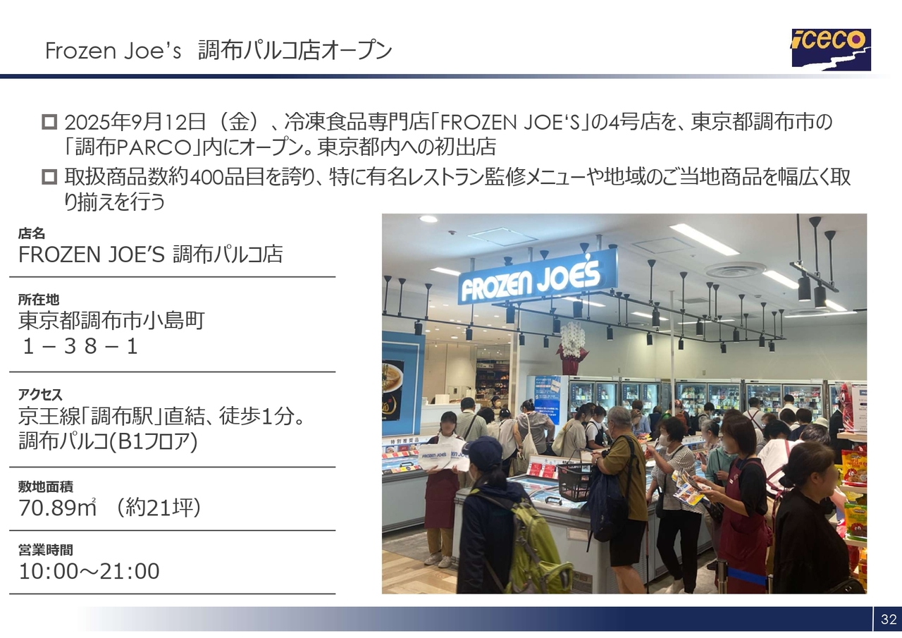 最後に「FROZEN JOE'S 調布パルコ店」の開店についてご報告します。