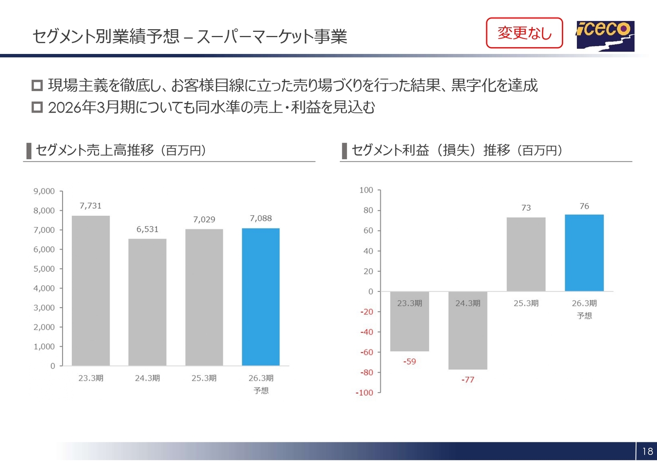 セグメント別業績予想 – スーパーマーケット事業