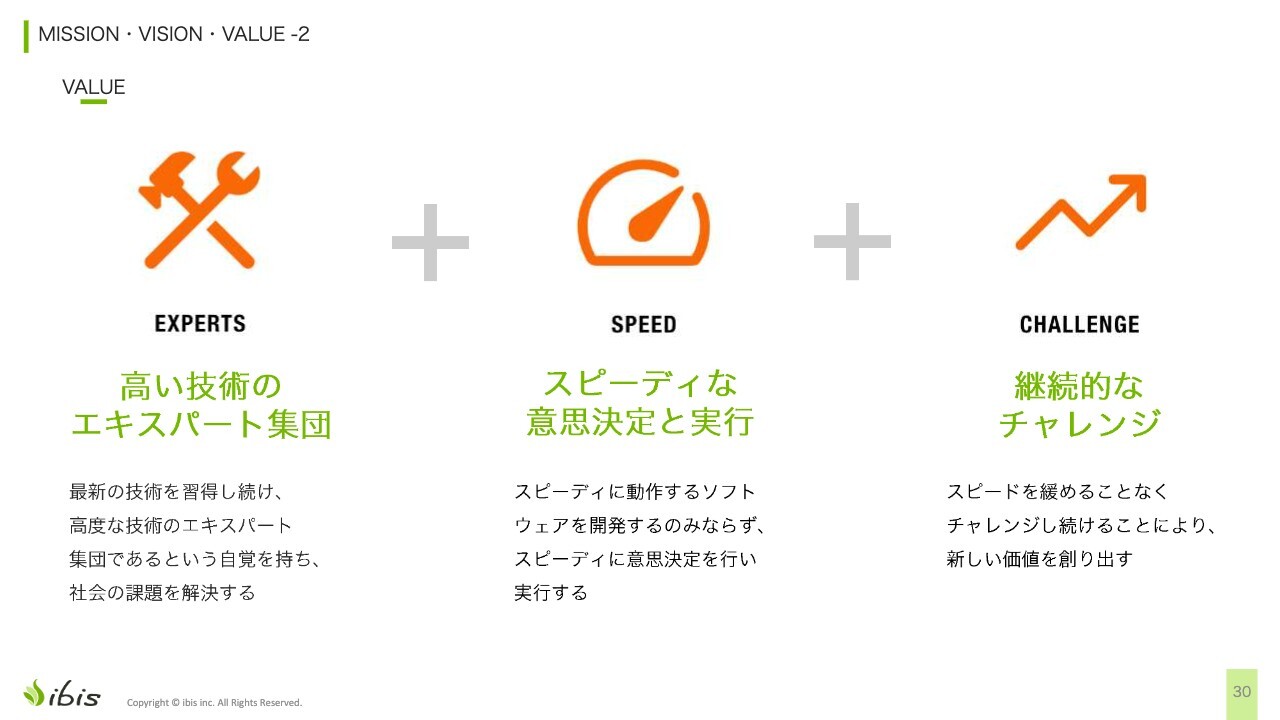 バリューとしては3つ掲げています。「高い技術のエキスパート集団」は、私がエンジニア出身であることもあり、これを掲げています。