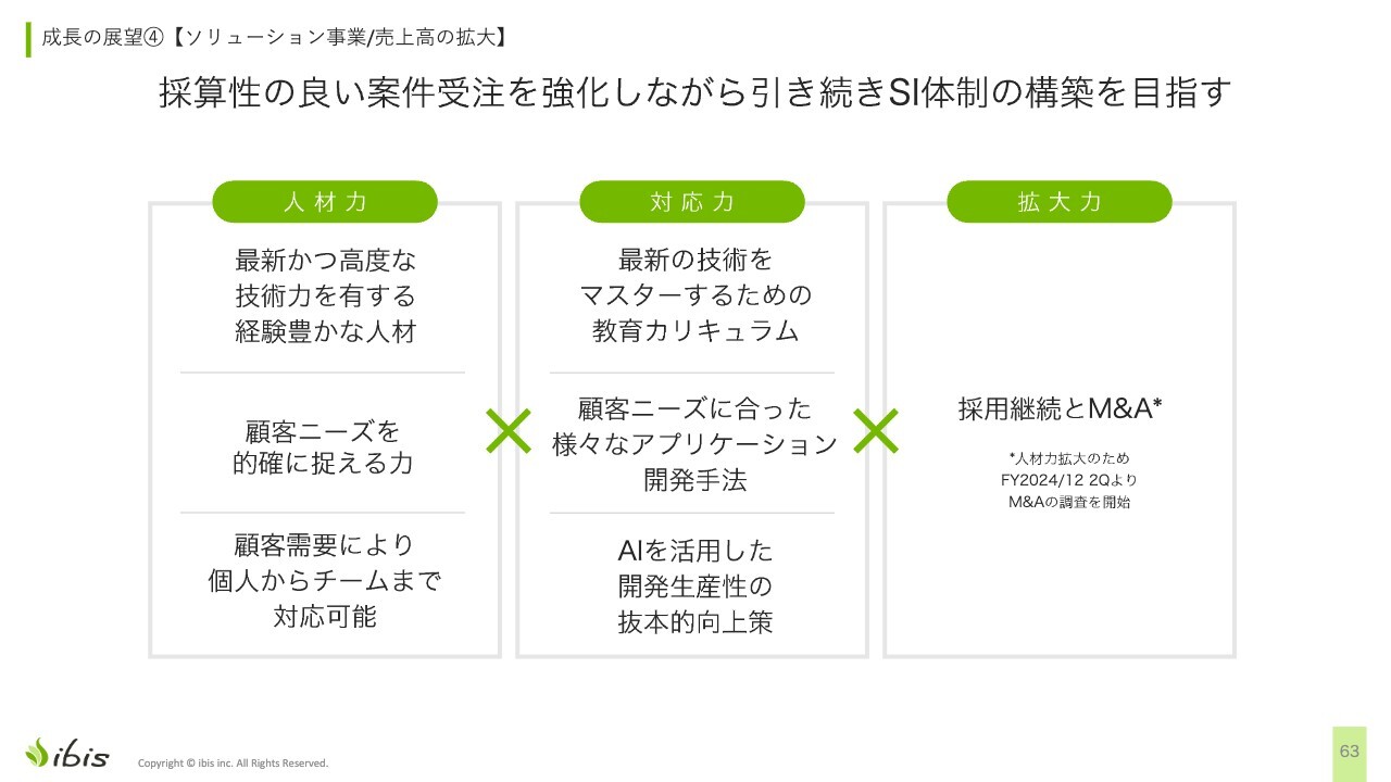 さらに、ゼロイチスタートは開発効率が良いため、ビジネスの利益率や粗利率が高い水準にあります。したがって、両者のシナジーによって、ソリューションセグメントのさらなる拡大を実現できるのではないかと思います。