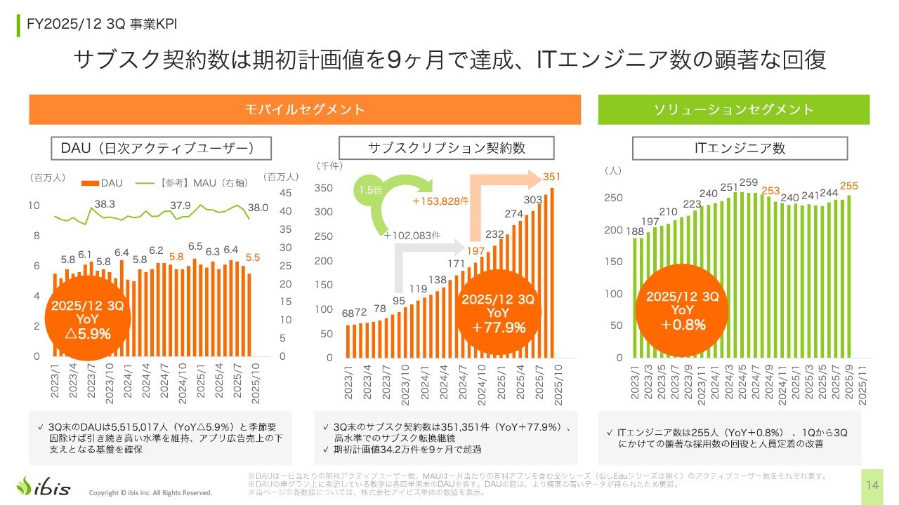 【QAあり】アイビス、3Q累計でアプリ課金売上が広告売上を初めて逆転 サブスク中心に収益構造転換