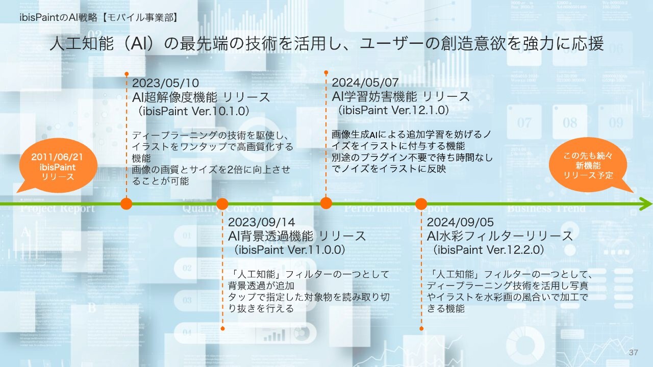 AIについてですが、AI超解像度機能、AI背景透過機能、AI学習妨害機能、AI水彩フィルターなど、かなり以前から開発を続けてきました。また、現在もAIを活用した機能を開発中です。