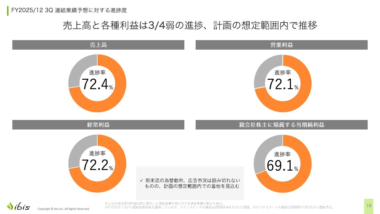 FY2025/12 3Q 連結業績予想に対する進捗度