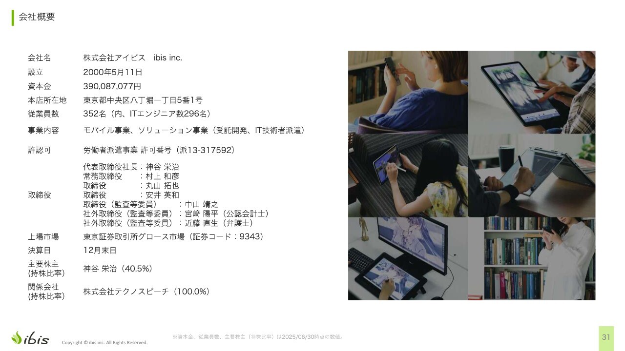 神谷栄治氏(以下、神谷):株式会社アイビス代表取締役社長の神谷です。それでは、株式会社アイビスの2025年12月期第3四半期決算説明を行います。