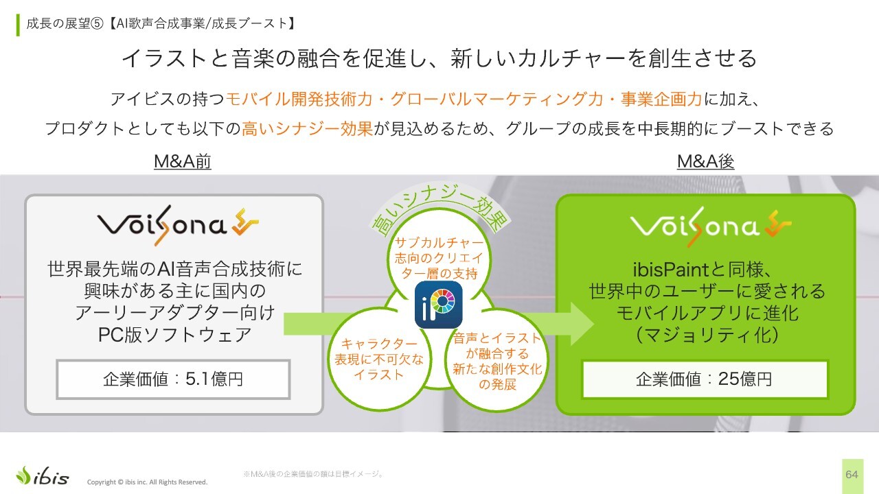 それから、M&Aについてですが、今年私は初めて経験しました。テクノスピーチとゼロイチスタートという企業をM&Aしたことで、さまざまな学びがあり、とてもおもしろいと感じています。「VoiSona」と「ibisPaint」がシナジーを生み出せるような開発やマーケティングも準備中です。テクノスピーチは現状は赤字ですが、数年後には黒字化できると考えています。