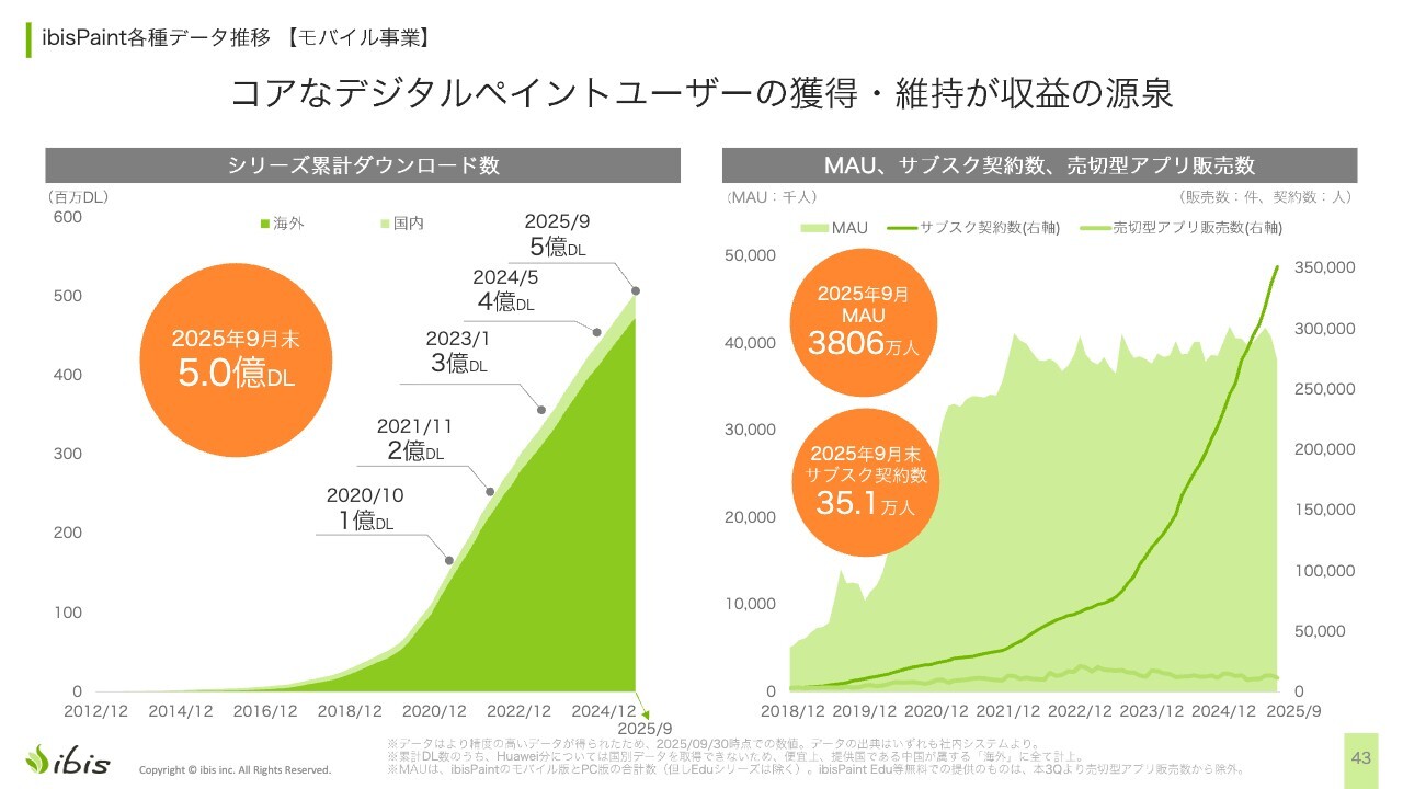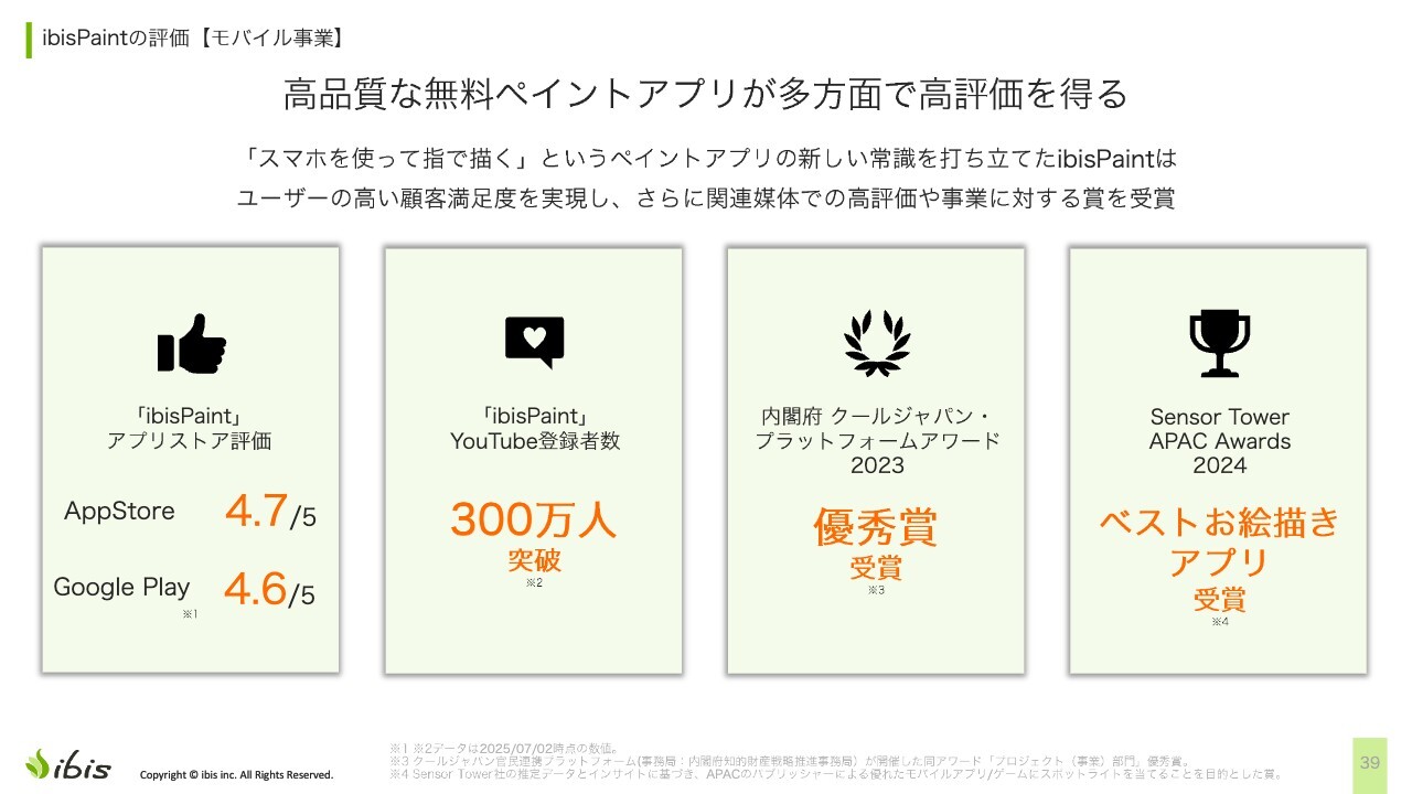 もう1つのトピックスは、「ibisPaint」シリーズが累計5億ダウンロードを達成したことです。