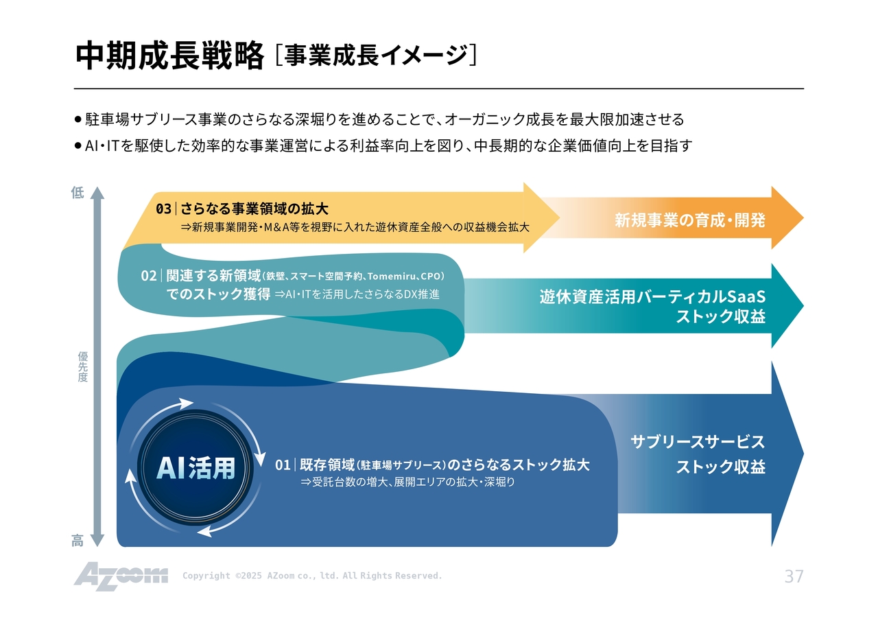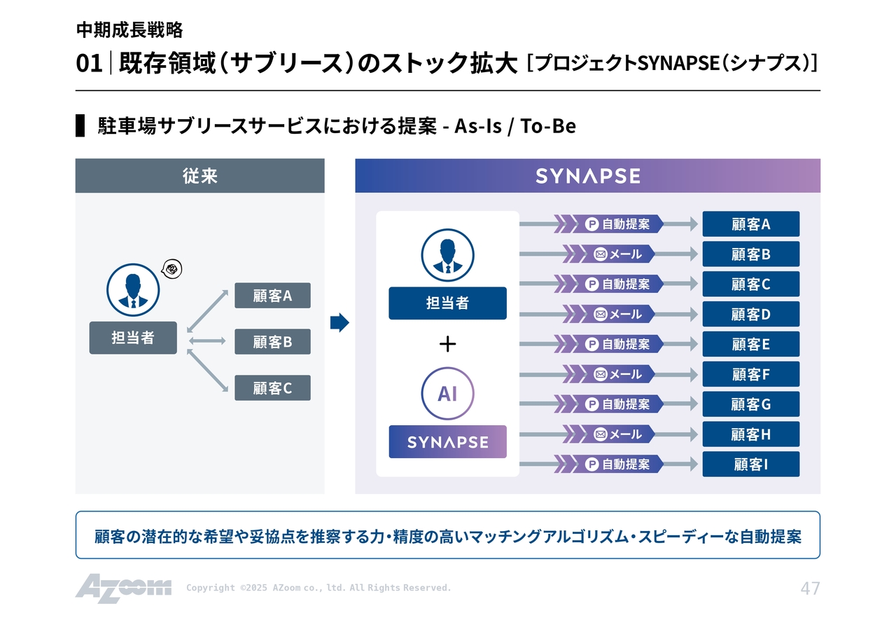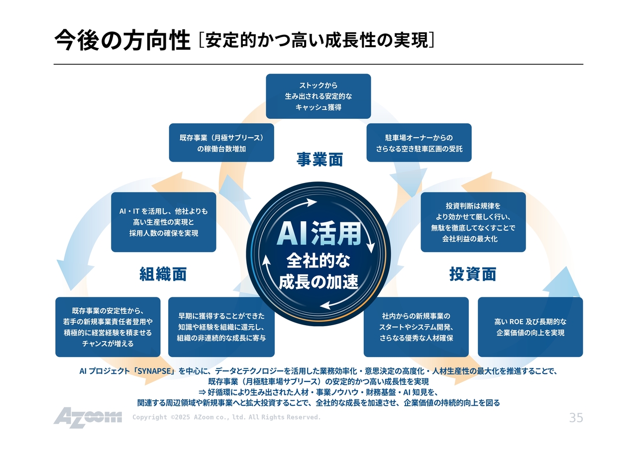 【QAあり】アズーム、駐車場サブリース事業の深掘りでオーガニック成長を加速 AI基盤「SYNAPSE」活用でストック収益の拡大へ