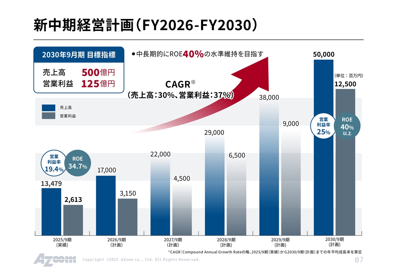 5ヶ年の新中期経営計画では、売上高についてCAGR30パーセントという非常に強い成長を実現できると考えています。
