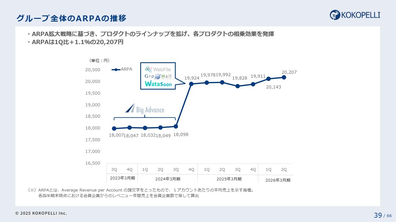ARPAですが、こちらはキー・ポイント社がグループジョインしたことにより、一気に上昇しました。その後も徐々に増加しています。