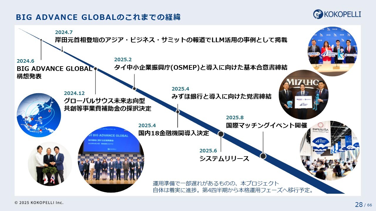 さらに国内では、当時は18金融機関の導入が決定していると記載していましたが、現在は20を超える金融機関が「BIG ADVANCE GLOBAL」に参加を表明しています。