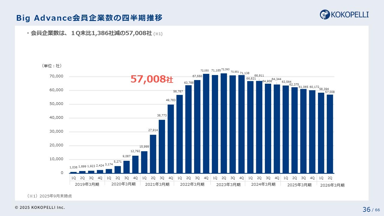 会員数についてです。会員数は現在減少傾向にありますが、後期には会員数を増加させることを目指しています。この取り組みはまだ実現していませんが、10月から先ほど申し上げた大規模なプロモーションを開始しており、再び会員の増加傾向をつくり出すべく、今期中にしっかりと仕上げていきたいと考えています。