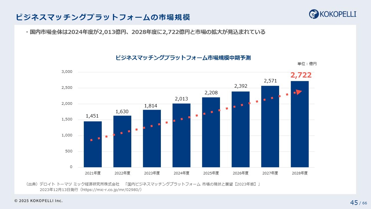 ビジネスマッチングプラットフォーム事業の市場規模は拡大しています。市場の拡大以上に成長を目指して取り組んでいきたいと考えています。