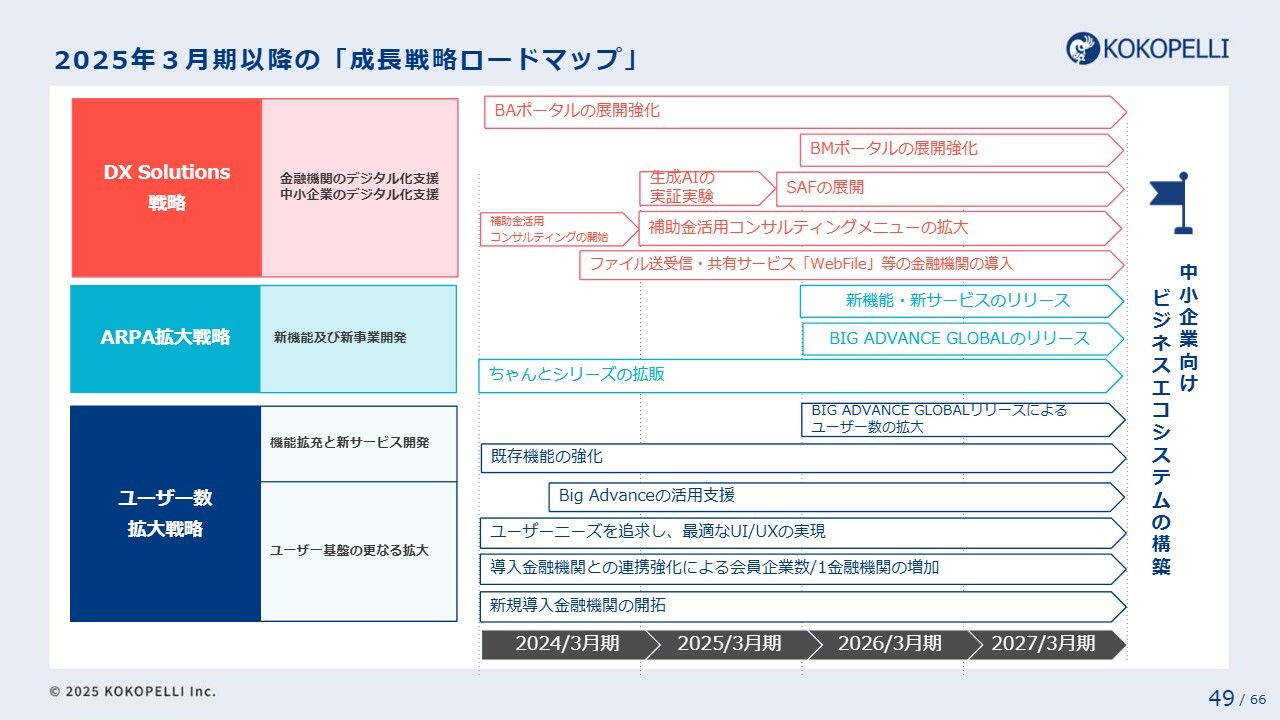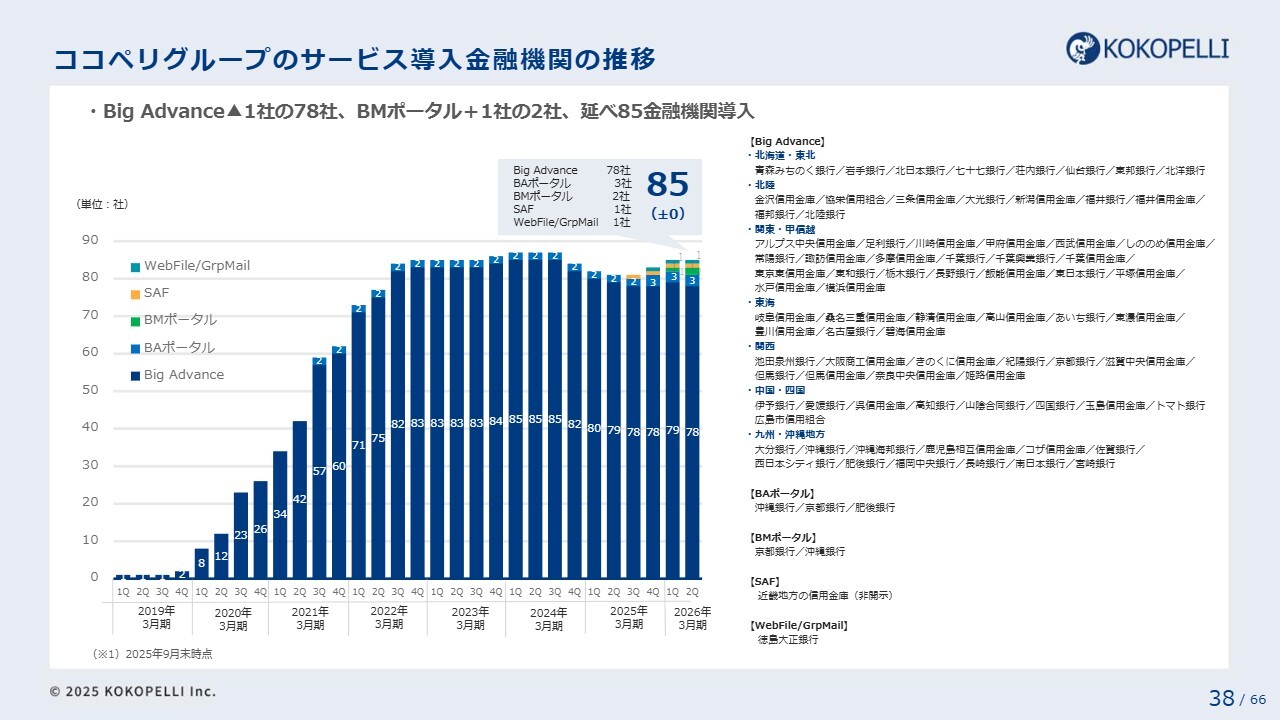 第2四半期は減収減益となりましたが、「BIG ADVANCE GLOBAL」は第4四半期より本格運用を開始する予定です。また、今年始めた新サービスであるビジネスマッチングサービス「BMポータル」、生成AIを活用したFAQサービス「SAF(サフ)」は、順調に金融機関への導入が進んでいます。