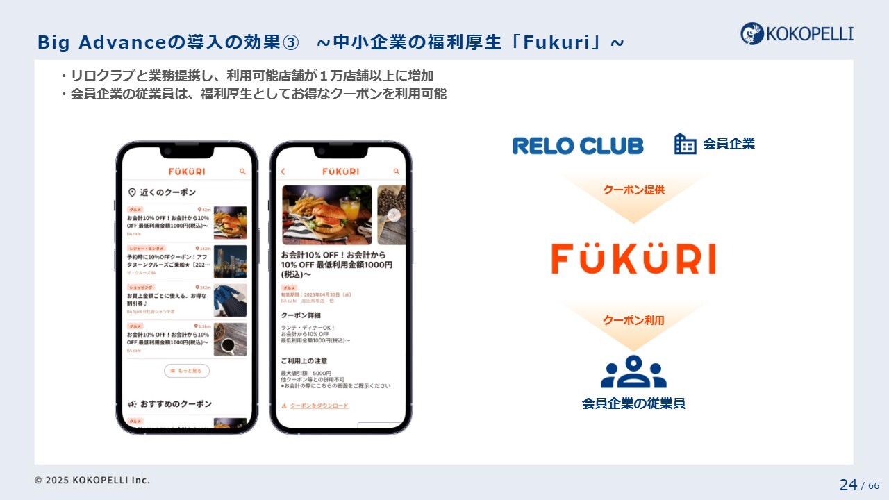 その他、「Fukuri」については、先ほど申し上げた中小企業の従業員向けのお得なクーポンサイトに関して、今年4月にリロクラブさまと提携し、クーポンの内容をさらに充実させる取り組みを行っています。