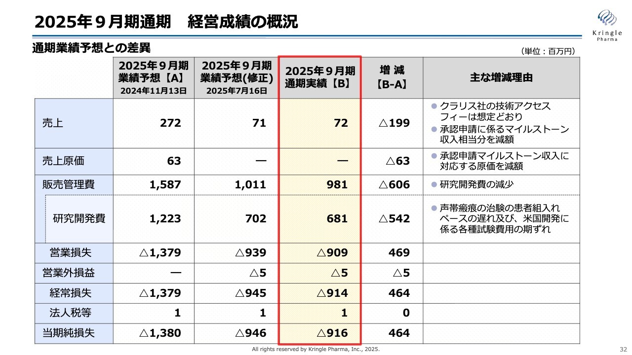 売上面の減少は、もともと2025年9月に承認申請を予定していたものの後ずれが発生し、これに伴い承認申請に係るマイルストーン収入が減少したことが大きな要因です。