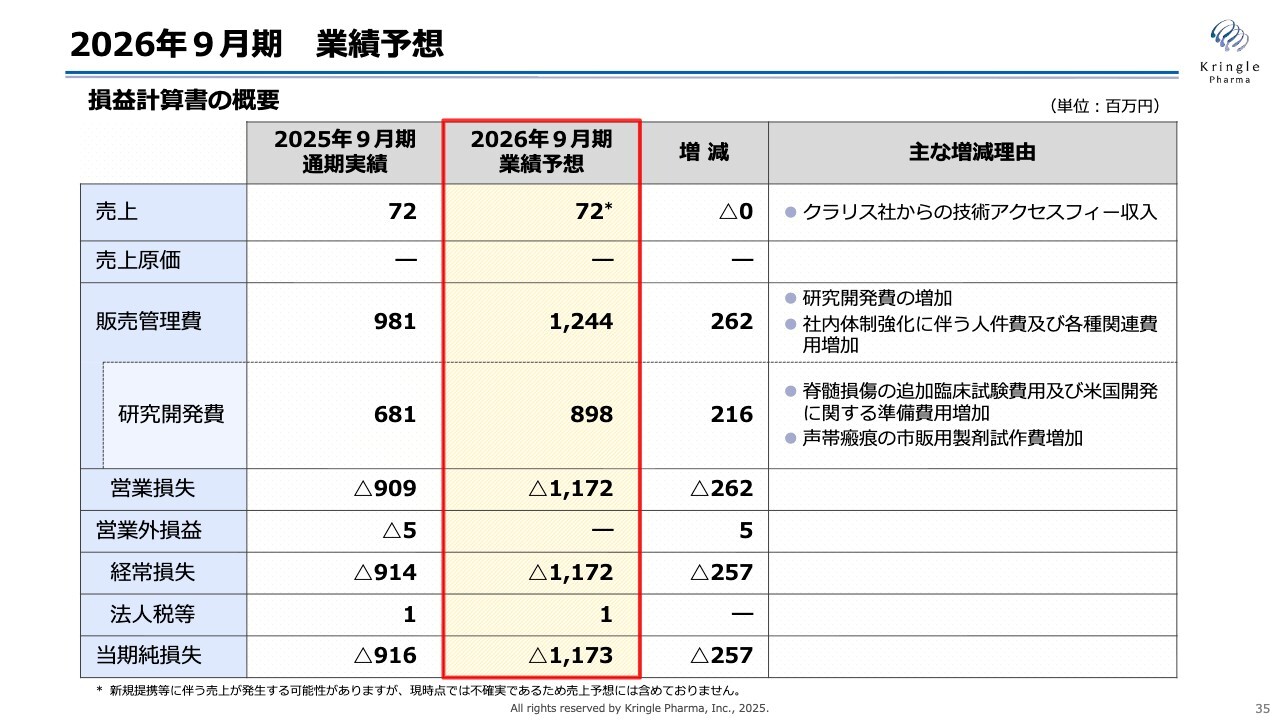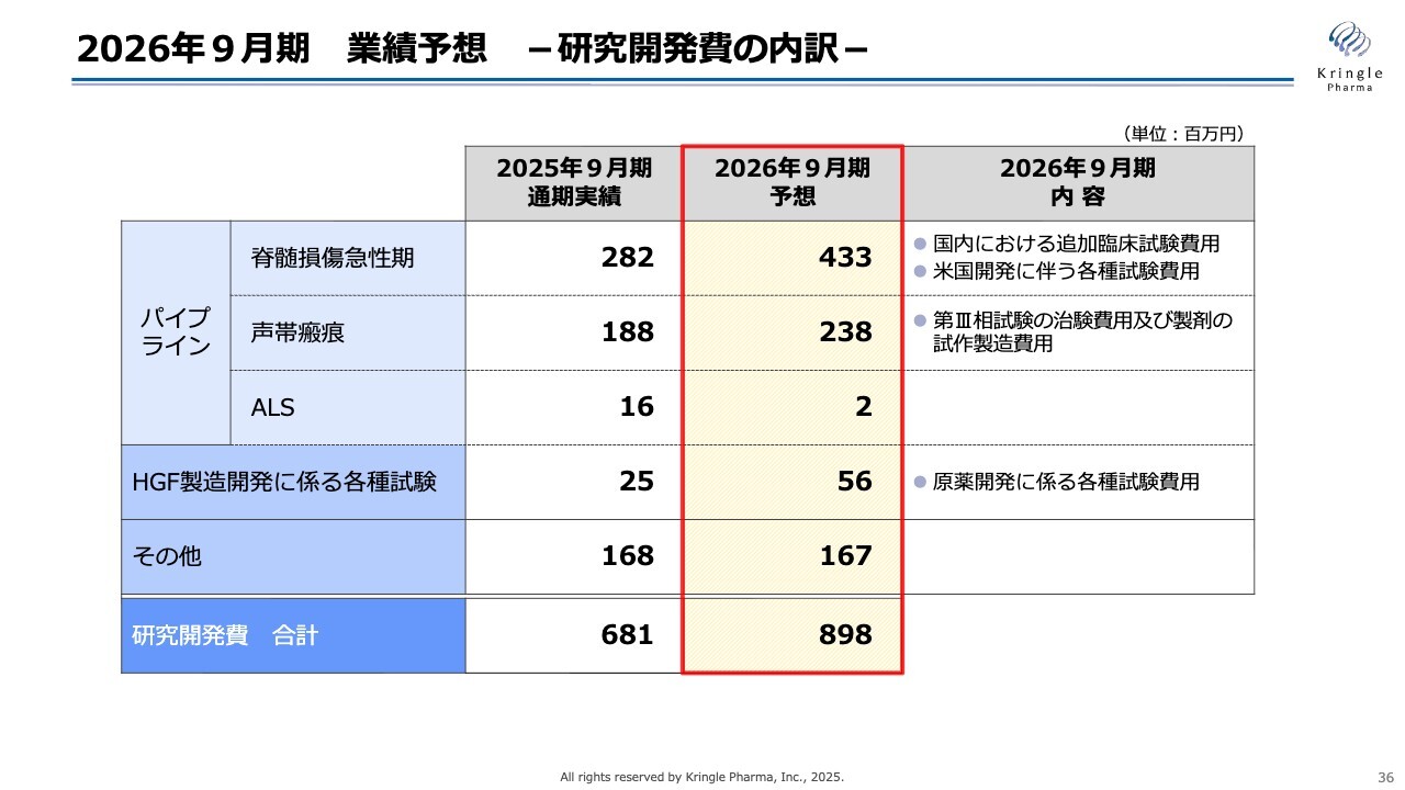2026年9月期 業績予想 -研究開発費の内訳-