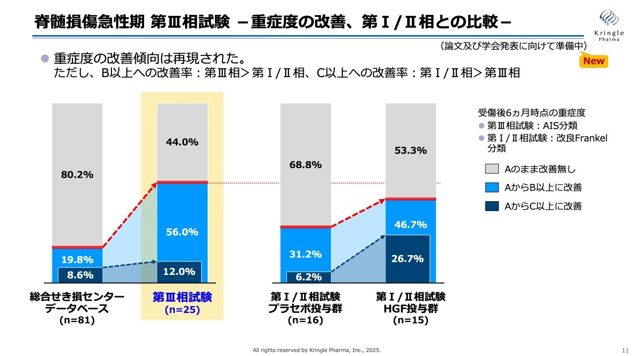 脊髄損傷急性期 第III相試験 -重症度の改善、第I/II相との比較-