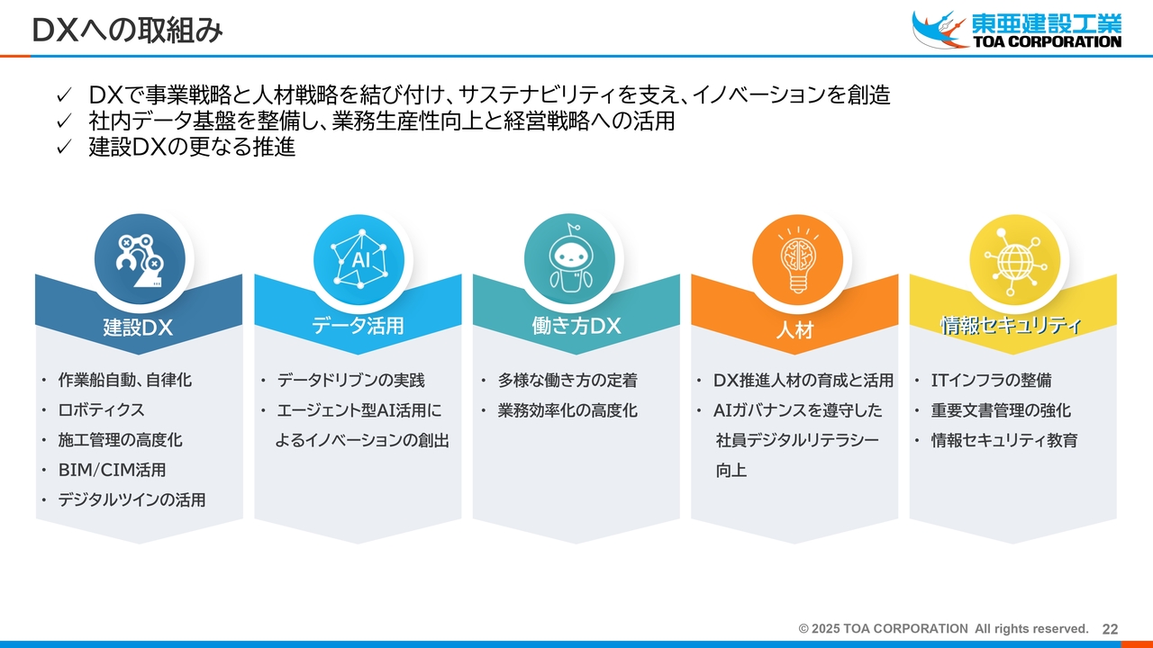 当社は建設を中心とした技術の会社であることから、建設DXのさらなる推進を進めたいと考えています。